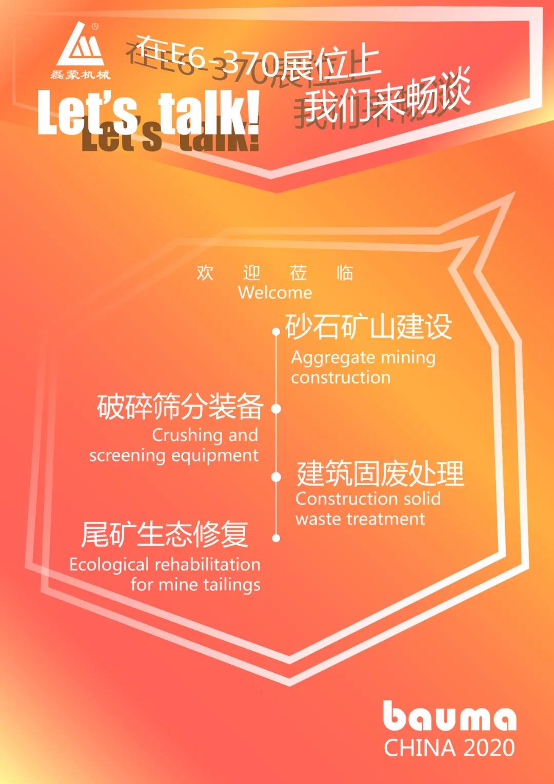 bauma CHINA 2020,磊蒙智能裝備集團在展位號:E6.370,與您不見不散。